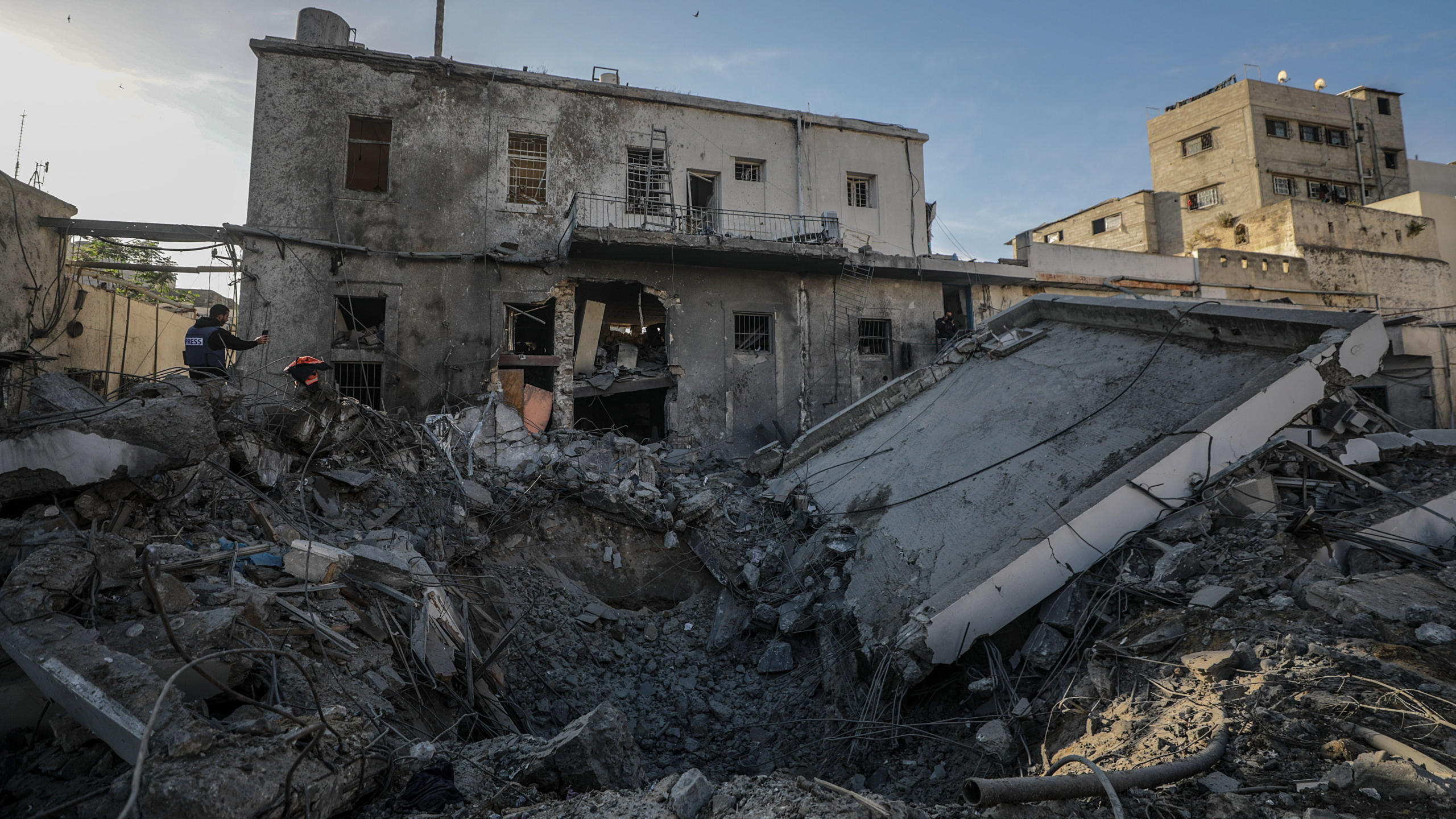 Israeli warplanes destroyed a tall residential building in al-Zeitoun, east of Gaza City, giving only a few minutes warning. Earlier, two Palestinians were killed by shelling in northern Gaza. Helicopters fired on Rafah in the south, and military vehicles attacked areas east of Deir al-Balah. Gunfire was also reported near al-Bureij refugee camp and along the Khan Younis coast.