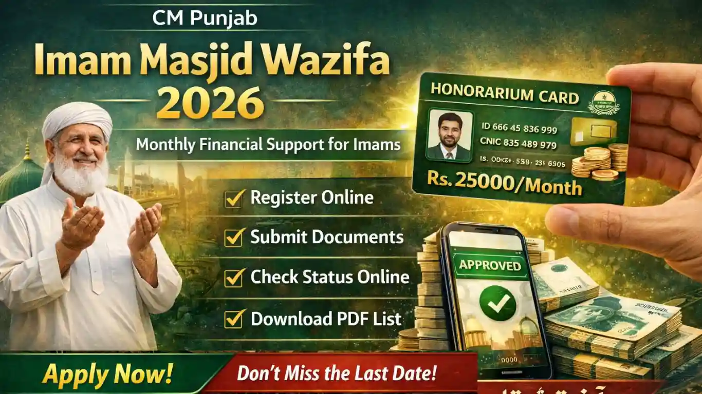 Apply for CM Punjab Honorarium Card 2026 and get Rs 25,000 monthly stipend for Imams. Check eligibility, benefits, and complete details.