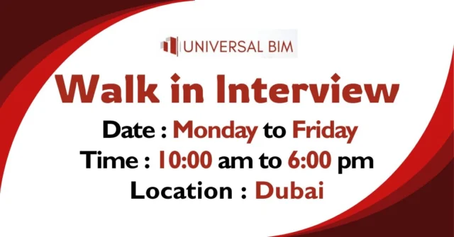 This Walk-in Interview in Dubai is designed for candidates who want immediate hiring opportunities in engineering and construction-related roles. Universal BIM provides high-quality BIM modeling and CAD drafting services to major UAE projects which has established the company as a trustworthy industry name.